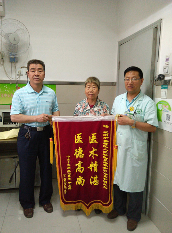 今年3月底,中水十五局退休工人丁义秀老人因右膝关节肿痛、活动受限半年多来医院外科就诊,接诊的正是马水明大夫,经过对丁义秀老人的详细检查,最后诊断为老年性骨性关节炎、关节腔积液、右膝部侧副韧带拉伤。马水明医生为丁义秀老人制定出关节腔内药物注射、中药外敷及抗炎、对症等综合治疗方案。在治疗过程中马水明医生跑前跑后亲自为丁义秀老人取药、注射治疗,以减少患者来回走动的疼痛。在丁义秀老人输液时,马水明医生一有空就去查看老人的治疗情况。疗程结束后,丁义秀老人告别了疼痛,告别了寸步难移。为感谢马水明医生的高尚医德、精湛技艺,丁义秀老人特在出院之际送来锦旗以表谢意。
