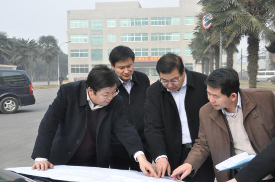 程建国副市长(右二)听取集团党委书记 董事长、总经理李立战(左一)汇报